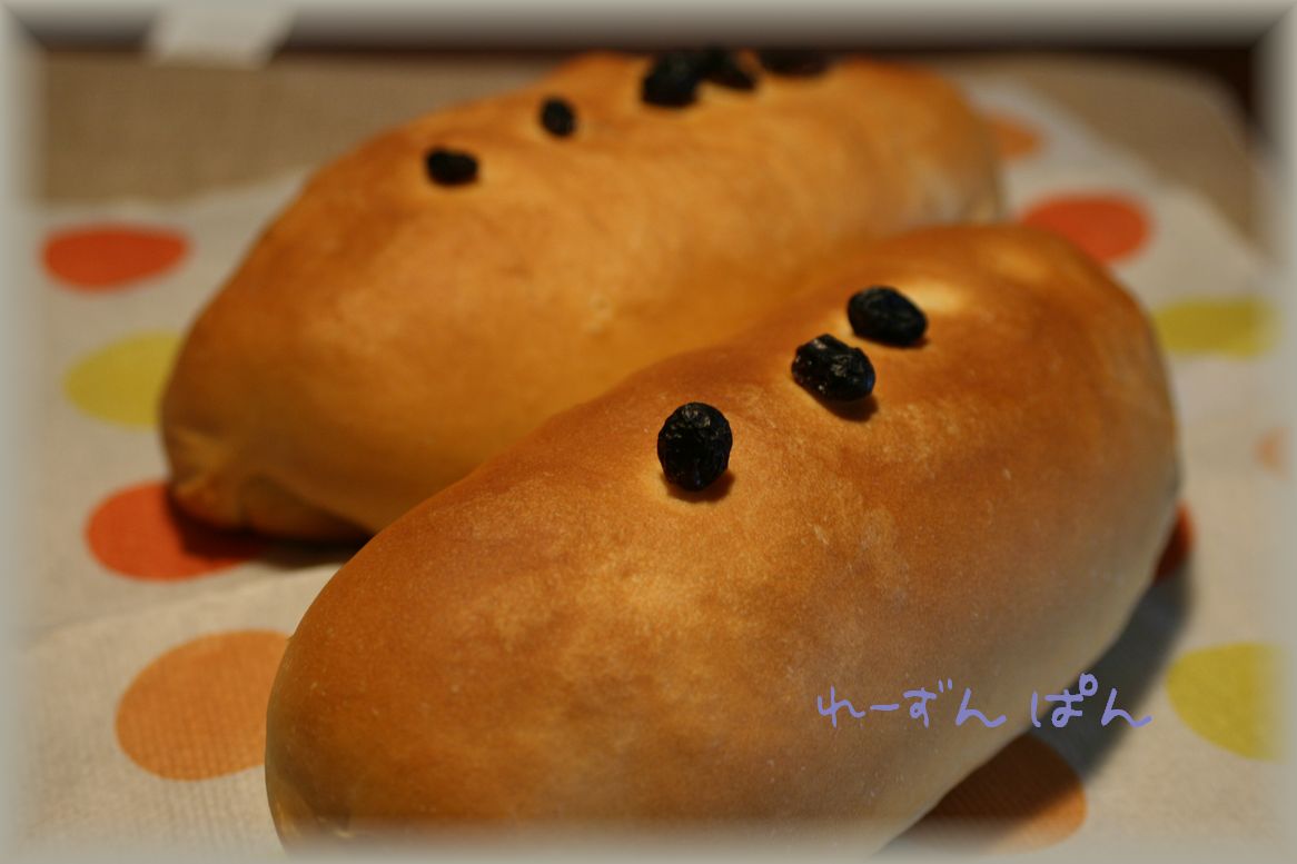 レーズンを混ぜ込むのを忘れたので、最後にレーズンを巻いて焼きました。