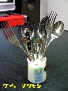 にスプーンフォークとも同じ方向に刺さってます